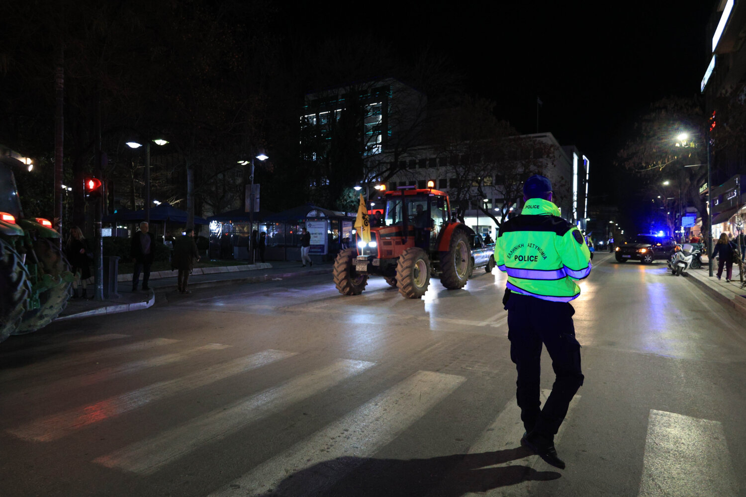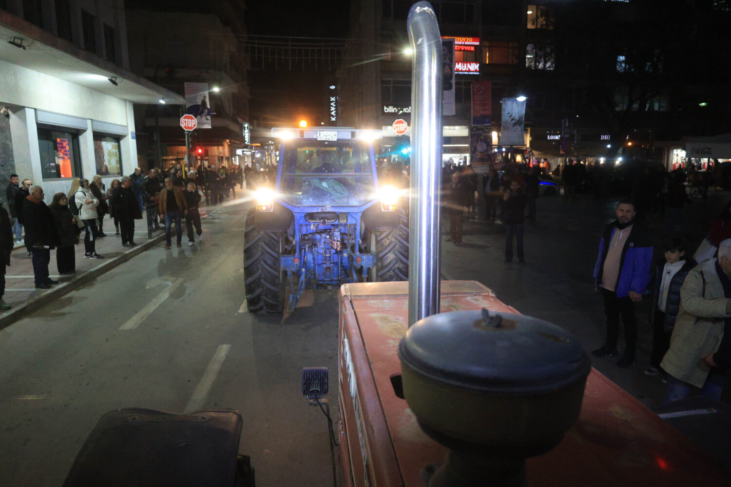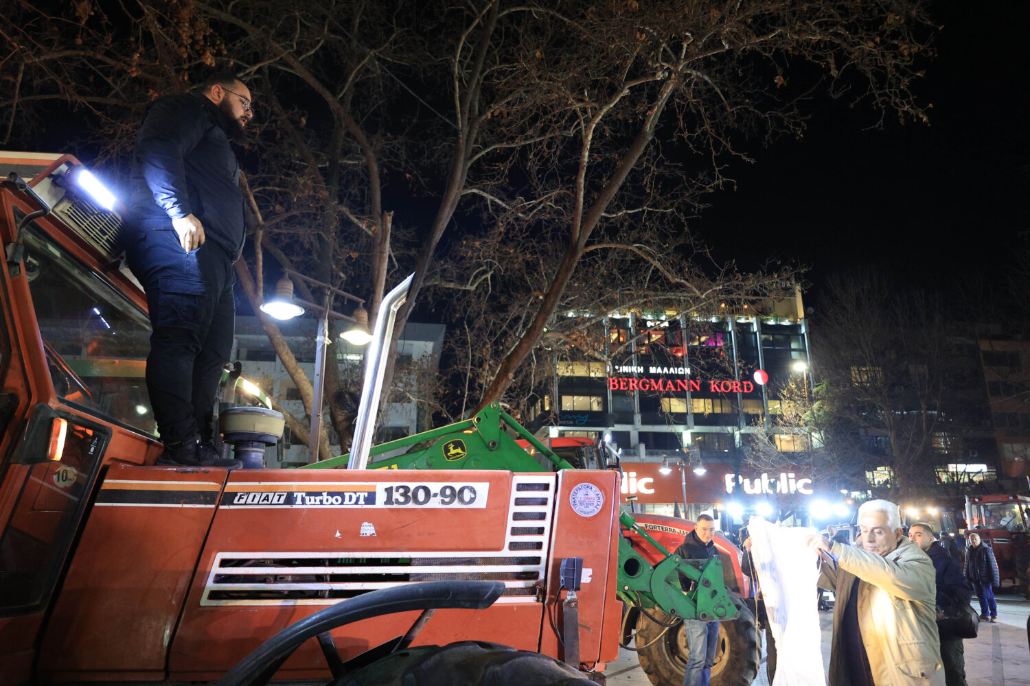 Στην Κεντρική Πλατεία της Λάρισας έφτασαν τα τρακτέρ από το Μπλόκο Πλατυκάμπου, από το οποίο και ξεκίνησαν λίγο μετά τις 6 το απόγευμα και φτάνοντας στο κέντρο της πόλης.