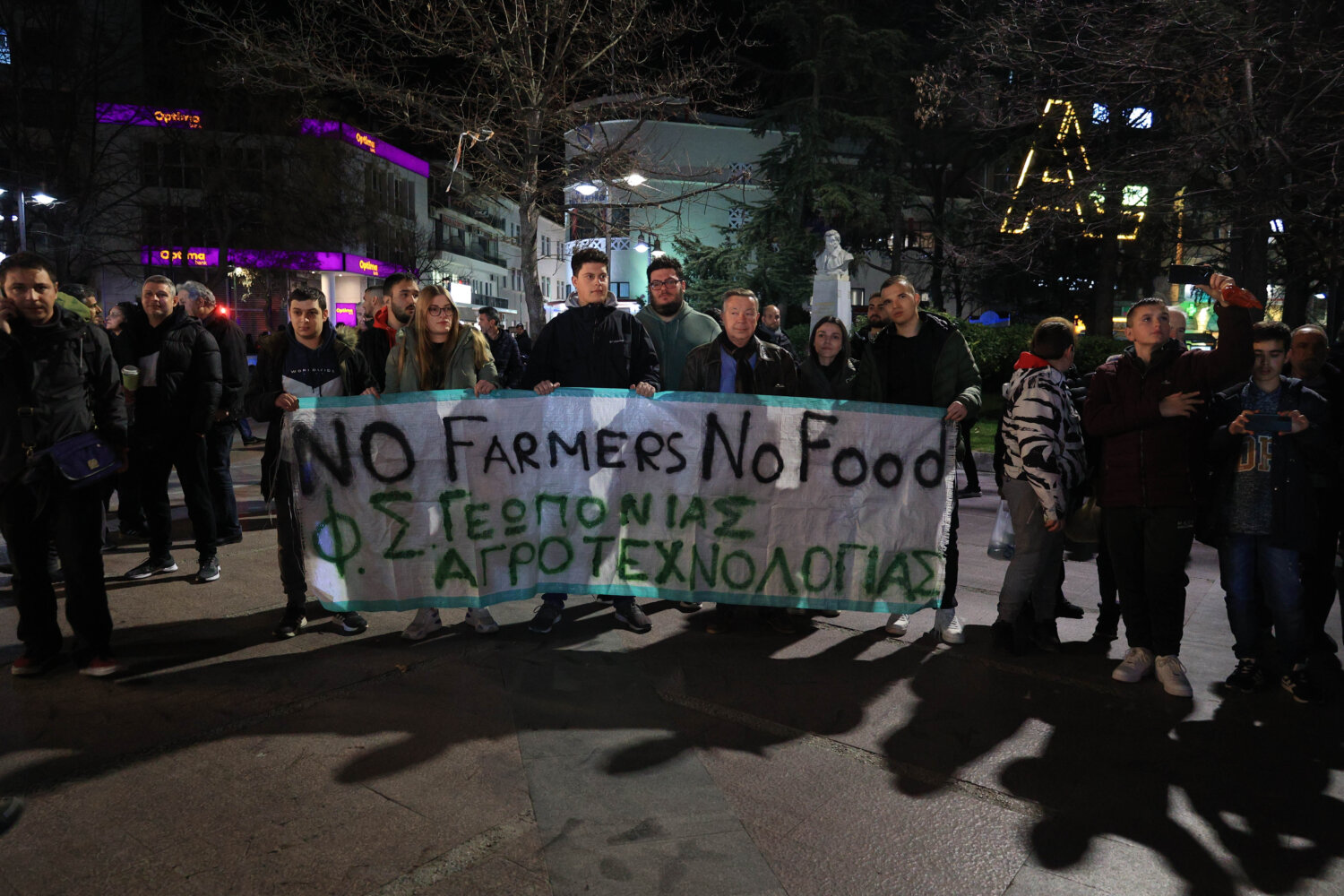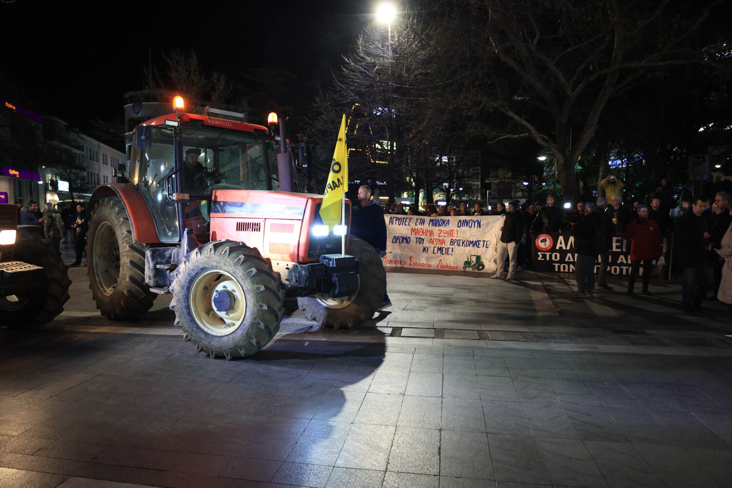 Αγρότες με πανό στην Κεντρική Πλατεία της Λάρισας