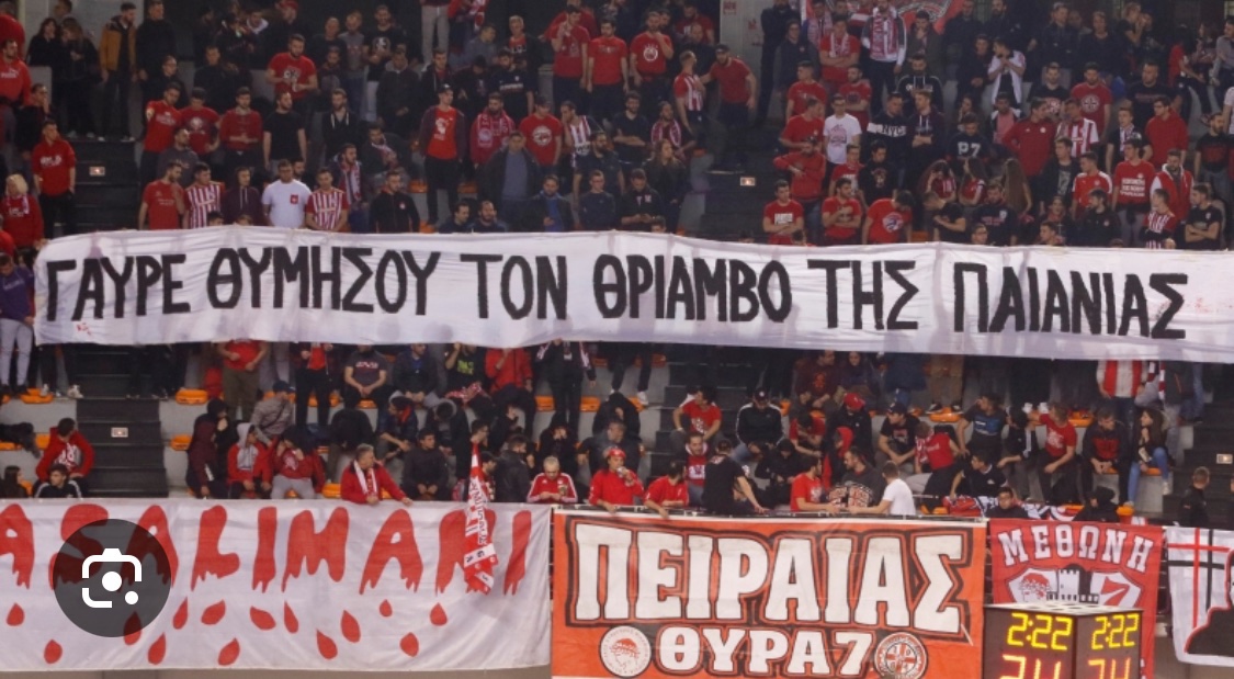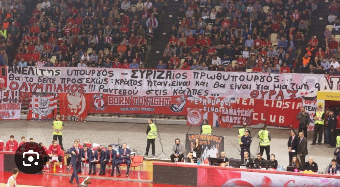 Η πρώτη φωτογραφία είναι από αγώνα μπάσκετ της ομάδας του Ολυμπιακού στο ΣΕΦ. Το μήνυμα είναι απολύτως σαφές. Για τους οργανωμένους οπαδούς της ομάδας του Πειραιά, κράτος είναι ο Ολυμπιακός, Βουλή η «Θύρα 7», Πρόεδρος της Δημοκρατίας ο ιδιοκτήτης της ομάδας και κυβέρνηση η διοίκηση της ΠΑΕ. «Θα τα πούμε στην κάλπη» προειδοποιούν χωρίς αιδώ και με πλήρη επίγνωση ως προς το περιεχόμενο του μηνύματος, οι οργανωμένοι οπαδοί.