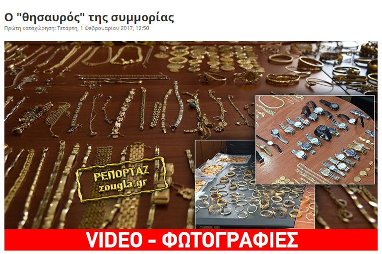 Τα μέλη της σπείρας είχαν στην κατοχή τους πανάκριβα κοσμήματα (μαργαριτάρια, δαχτυλίδια κ.ά.), ρολόγια, χρυσές λίρες και μεγάλα ποσά σε μετρητά, τα οποία εκτιμάται πως ήταν η λεία από τις κλοπές που διέπρατταν.