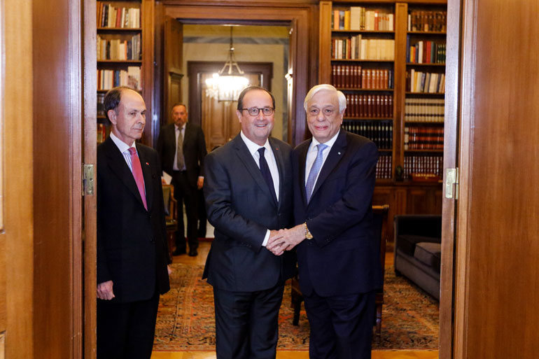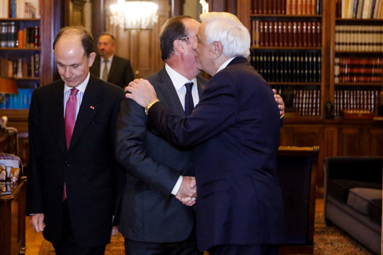 Από την πλευρά του, ο Πρόεδρος της Ελληνικής Δημοκρατίας κ. Προκόπης Παυλόπουλος τόνισε ότι «O Φρανσουά Ολάντ ήταν, είναι και θα παραμείνει ένας μεγάλος Φίλος της Ελλάδας αλλά και μια ηγετική πολιτική φυσιογνωμία στον Ευρωπαϊκό χώρο», ενώ υπογράμμισε και την πολύτιμη συμβολή του πρώην Υπουργού Οικονομικών της Γαλλίας κ. Μισέλ Σαπέν, ο οποίος συνόδευε τον κ. Ολάντ στο Προεδρικό Μέγαρο.