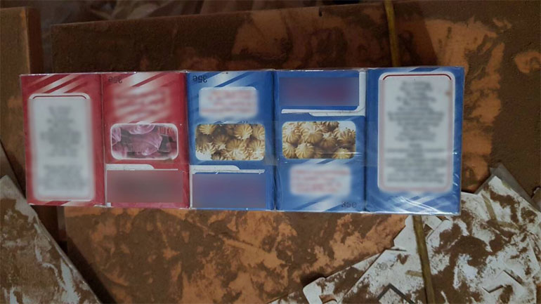 - τα προς εξαγωγή πακέτα τσιγάρων ήταν αποθηκευμένα σε πακέτα που ανέγραφαν ότι περιέχουν διάφορα είδη ζαχαρωτών, όμοια σε μέγεθος και σχήμα με πραγματικά πακέτα τσιγάρων,