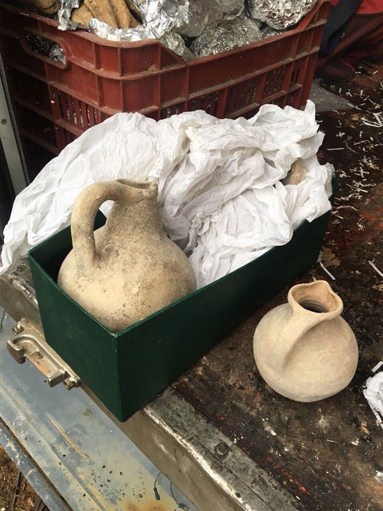 - Επιπλέον εντός κοντέινερ βρέθηκαν αντικείμενα για τα οποία κλήθηκε υπάλληλος της Εφορείας Αρχαιοτήτων ανατολικής Αττικής και διαπίστωσε ότι πρόκειται για αγγεία – ολόκληρα και θραύσματα – τα οποία χρονολογούνται από το 2.000 Π.Χ.
