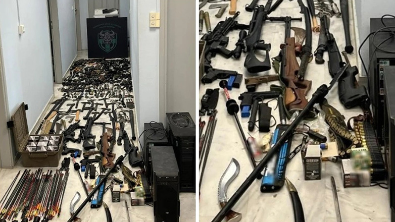 Κατά τη διάρκεια κατ’ οίκον έρευνας, εντοπίστηκε ένα ιδιαίτερα εκτεταμένο και επικίνδυνο οπλοστάσιο, του οποίου η έκταση έχει προκαλέσει εντύπωση ακόμη και στις διωκτικές αρχές.