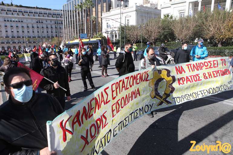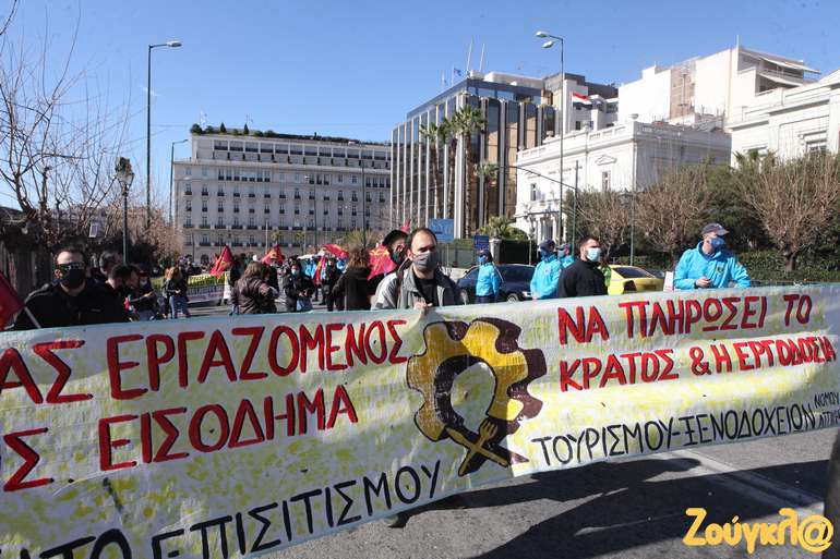 Ολοκληρώθηκε πριν από λίγο η πορεία που έκαναν εργαζόμενοι στους κλάδους του επισιτισμού. Οι διαδηλωτές ξεκίνησαν από το Υπουργείο Εργασίας και κατευθύνθηκαν προς τη Βουλή, όπου φώναξαν συνθήματα για την κατάσταση στην οποία έχουν περιέλθει λόγω του κορωνοϊού.