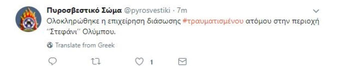 Μάλιστα η Πυροσβεστική Υπηρεσία ενημέρωσε για την ολοκλήρωση της επιχείρησης διάσωσης και μέσω του λογαριασμού της στο Twitter
