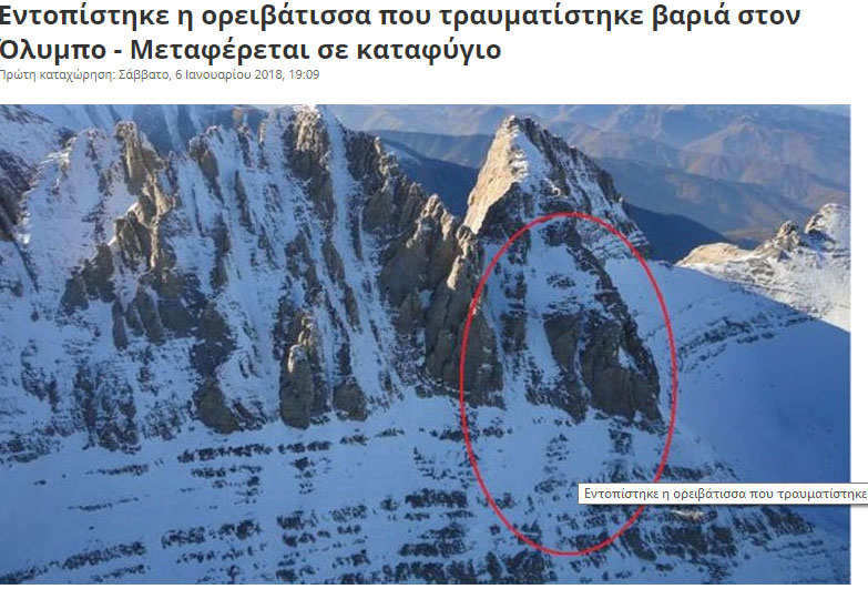 Τις πρώτες πρωινές ώρες της Κυριακής 7 Ιανουαρίου 2018, ελικόπτερο Super Puma της Πολεμικής Αεροπορίας (ΠΑ) παρέλαβε και μετέφερε 35χρονη πολυτραυματία, μετά από πτώση σε χαράδρα στην περιοχή Στεφάνι του Ολύμπου.