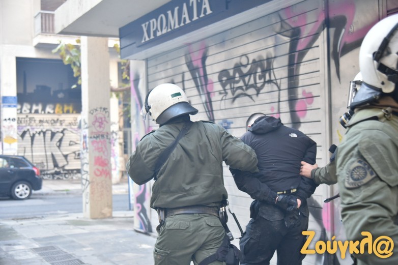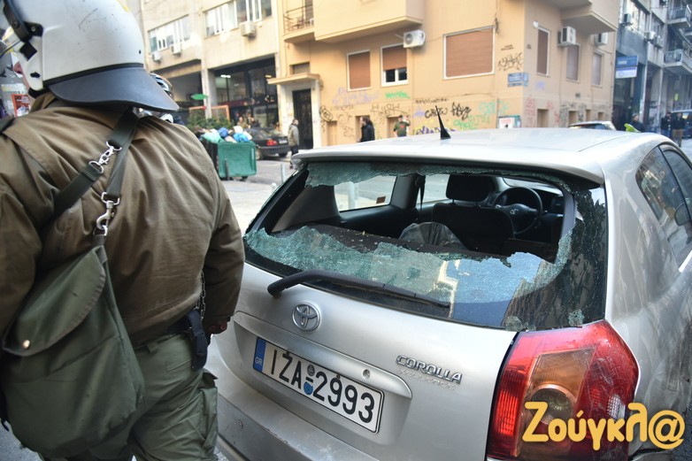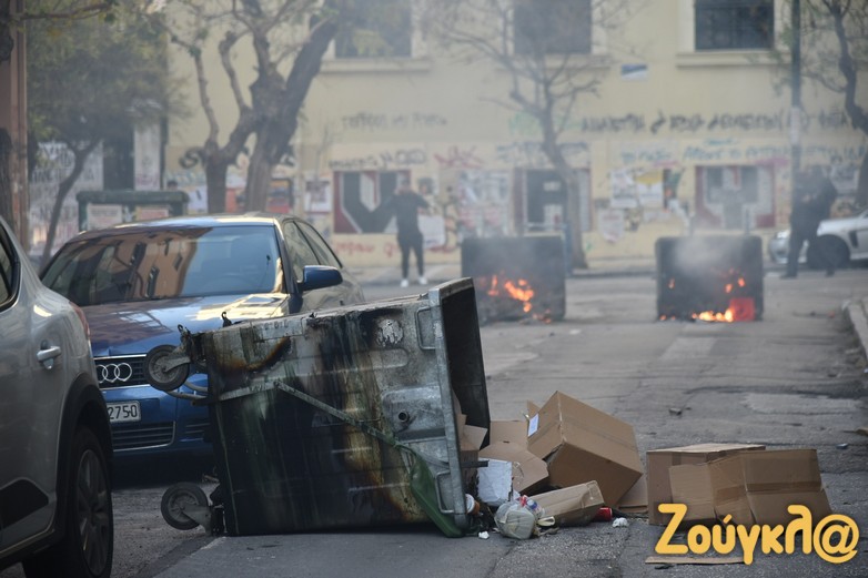 Η πορεία συνεχίστηκε και κατέληξε στα Εξάρχεια, όπου κάποιοι από τους διαδηλωτές έβαλαν φωτιές σε κάδους απορριμμάτων στην οδό Τζώρτζ και πέταξαν αντικείμενα στους αστυνομικούς.