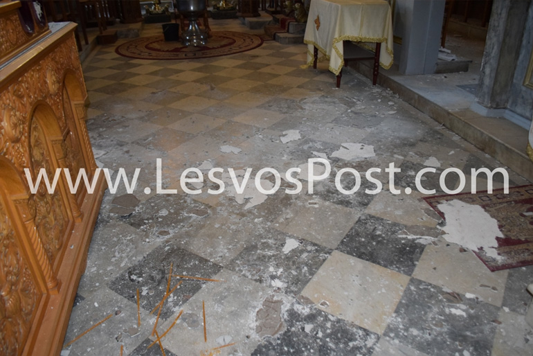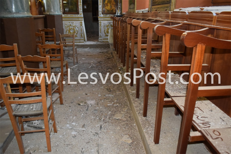 Πολύ μεγάλες είναι οι ζημιές που προκλήθηκαν στον Ιερό Ναό των Αγίων Πατέρων στον Άνω Χάλικα Μυτιλήνης, με τον χώρο να θυμίζει «βομβαρδισμένο» τοπίο!