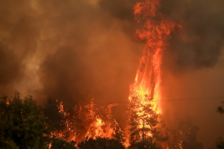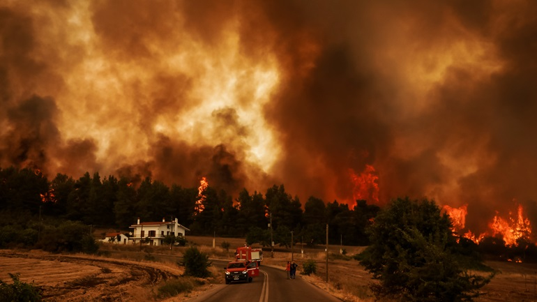 Οι αναζωπυρώσεις στα χωριά της Εύβοιας είναι συνεχείς ακόμη και στα καμένα χωριά, με αποτέλεσμα να χρειάζονται εκ νέου δυνάμεις της Πυροσβεστικής για την κατάσβεσή της. Για 7η συνεχόμενη μέρα, η πυρκαγιά καίει τη Βόρεια Εύβοια προκαλώντας ολική καταστροφή στις ανθρώπινες περιουσίες. Πολλά ζώα κάηκαν. Το πευκόδασος έγινε στάχτη…. Ένα μαύρο τοπίο απλώνεται στη Βόρεια Εύβοια, με την ατμόσφαιρα να παραμένει αποπνικτική.
