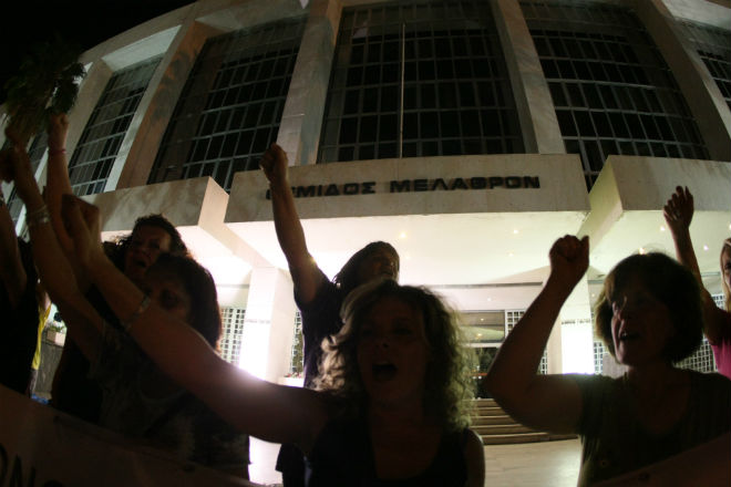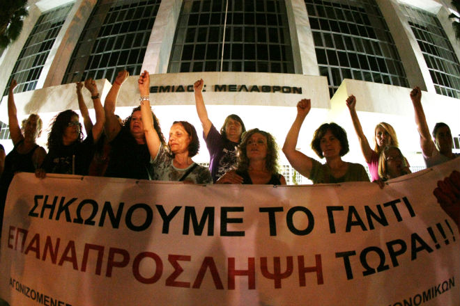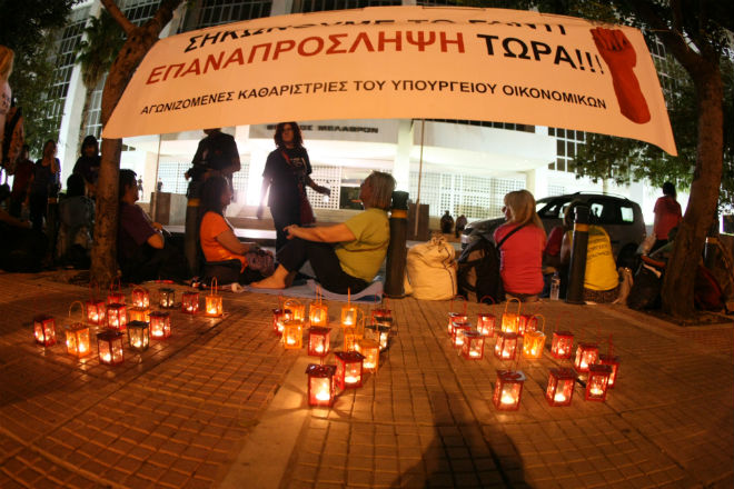 Ολονύκτια διαμαρτυρία πραγματοποιούν έξω από τον Άρειο Πάγο οι απολυμένες καθαρίστριες του Υπουργείου Οικονομικών, συνεχίζοντας τον πολύμηνο αγώνα τους, ενάντια στην αδιάλλακτη στάση της κυβέρνησης.