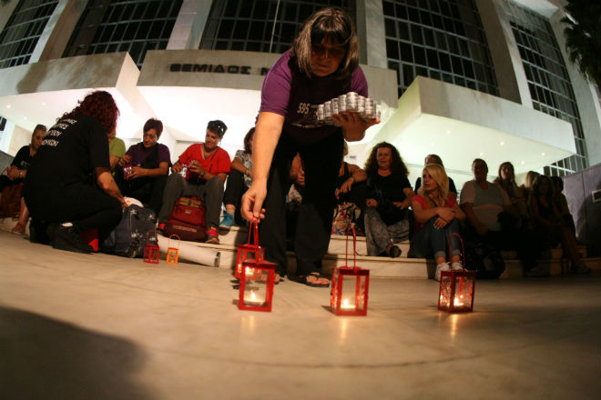 Σχηματίζοντας με κεριά τον αριθμό 595, όσες και οι συνάδελφοί τους που έχουν μείνει χωρίς εργασία, ζητούν την επαναπρόσληψή τους, φωνάζοντας συνθήματα και αναφέροντας ότι δεν θα υποχωρήσουν έως ότου δικαιωθούν.