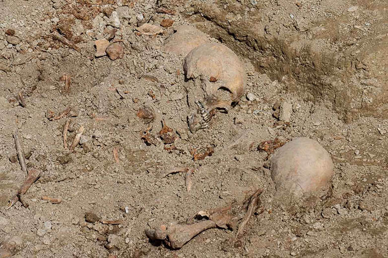 Τα πρώτα οστά είχαν βρεθεί στα τέλη του 2024, λίγες μέρες πριν τις γιορτές. Στις 26 Φεβρουαρίου, εντοπίστηκε ένας μεγάλος λάκκος με τα οστά έντεκα εκτελεσμένων. Έντεκα σκελετοί γυμνοί και ξυπόλητοι, ο ένας δίπλα στον άλλο.