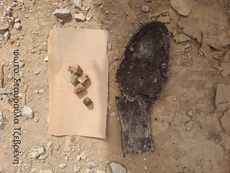 Βρέθηκαν σόλες, άρβυλα στρατιωτικά, κουμπιά από εσώρουχα κυρίως, ελάχιστα από ενδύματα. Σε έναν υπήρχε και ένα χάλκινο δαχτυλίδι. Συλλέξαμε και σφαίρες. Νομίζω ότι όσοι μελετούν και τη νεότερη ιστορία θα μπορέσουν να βοηθήσουν για τις ταυτίσεις».