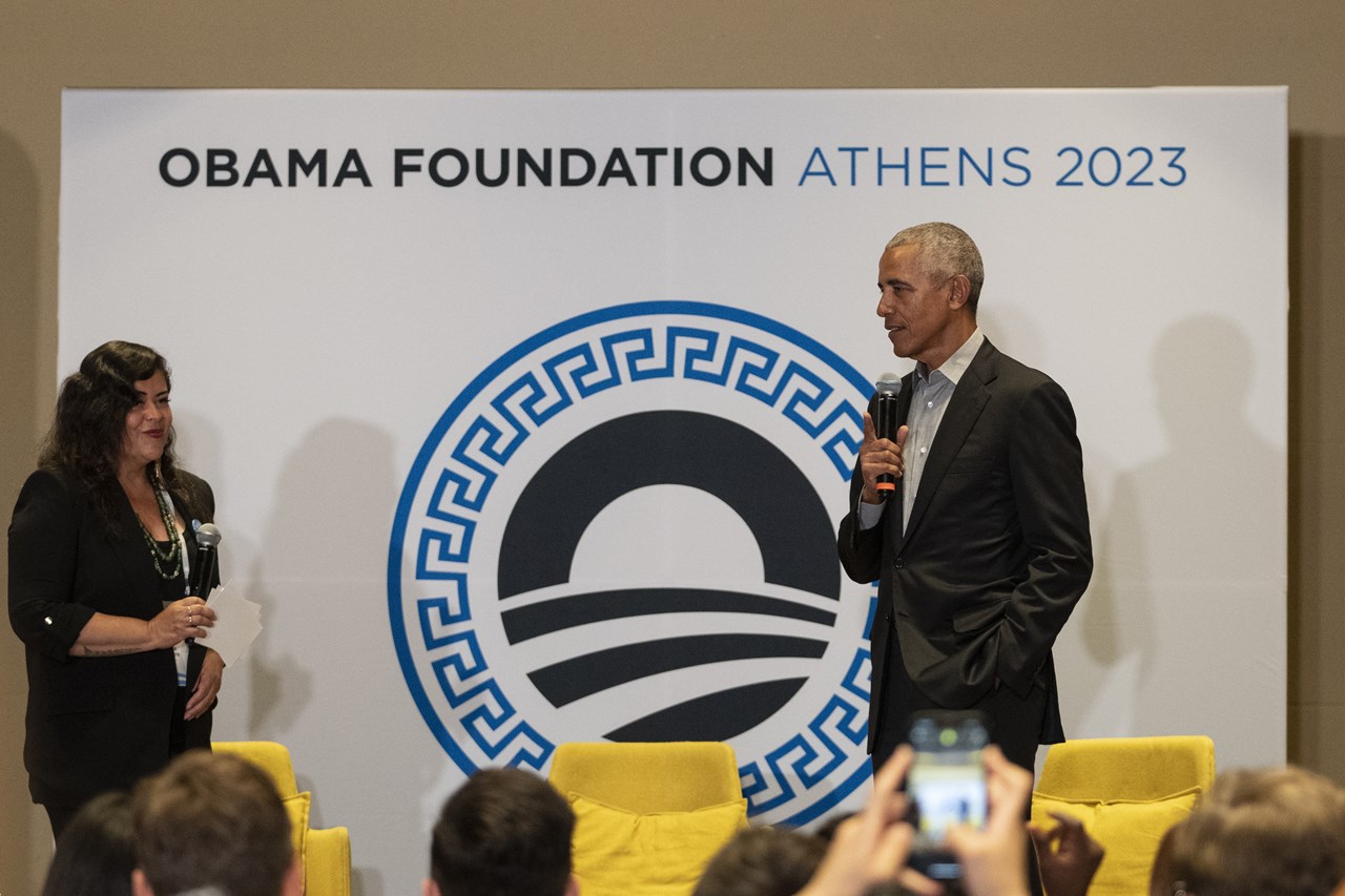 Στη συνέχεια η αδελφή του Μπαράκ Ομπάμα, Μάια Σοετόρο Εντζί, σύμβουλος του Ιδρύματος Ομπάμα, έθεσε στον πρώην Πρόεδρο των ΗΠΑ προσωπικές ερωτήσεις για παιδικές αναμνήσεις, σημαντικές συμβουλές που έχει λάβει και το όραμά του για το πρόγραμμα “Obama Foundation Leaders”.