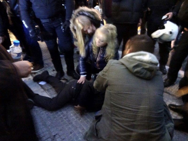 Σύμφωνα με το parallaximag.gr, οι άνδρες της ΕΛ.ΑΣ. προσπάθησαν να τον συλλάβουν ενώ ο ίδιος φώναζε πως δεν ήταν παράνομος.