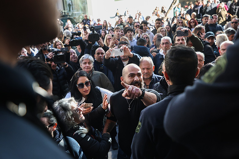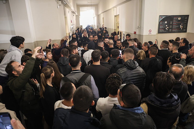 Άνθρωποι κάθε ηλικίας, νέοι, ηλικιωμένοι, άνδρες και γυναίκες, βρίσκονται έξω αλλά και μέσα στα δικαστήρια με αφορμή την άφιξη των κατηγορουμένων.