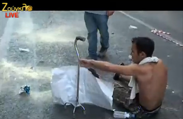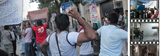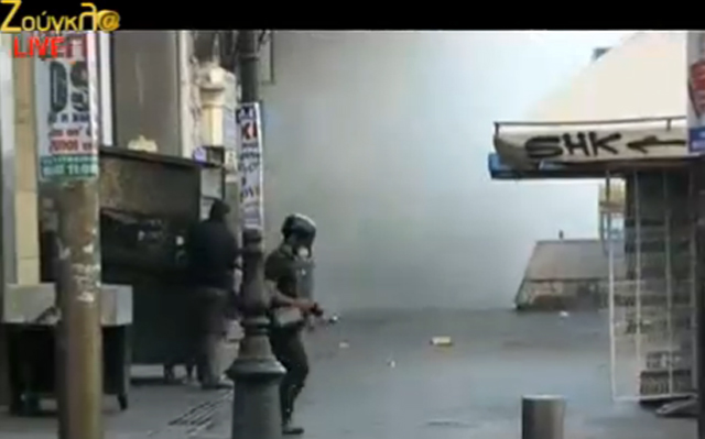 (Διαδηλωτές αντιμέτωποι με τα ΜΑΤ)