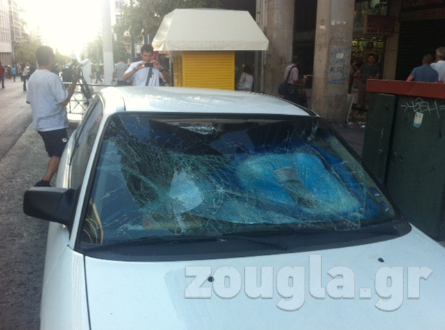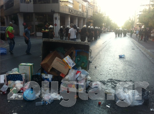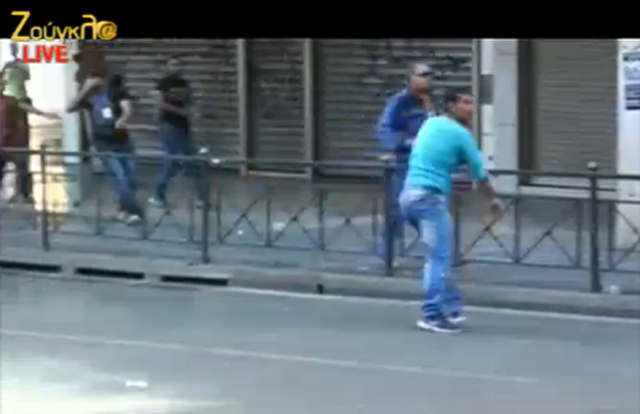 Λίγα λεπτά μετά τις 16.00 το μεσημέρι μερίδα διαδηλωτών (700 περίπου στο σύνολο) πέταξε πέτρες κατά αστυνομικών δυνάμεων, καθώς δεν μπορούσαν να διέλθουν από τις οδούς Πανεπιστημίου, Σταδίου, 3ης Σεπτεμβρίου προκειμένου να προσεγγίσουν την πρεσβεία των ΗΠΑ, όπως δηλαδή είχαν προγραμματίσει.