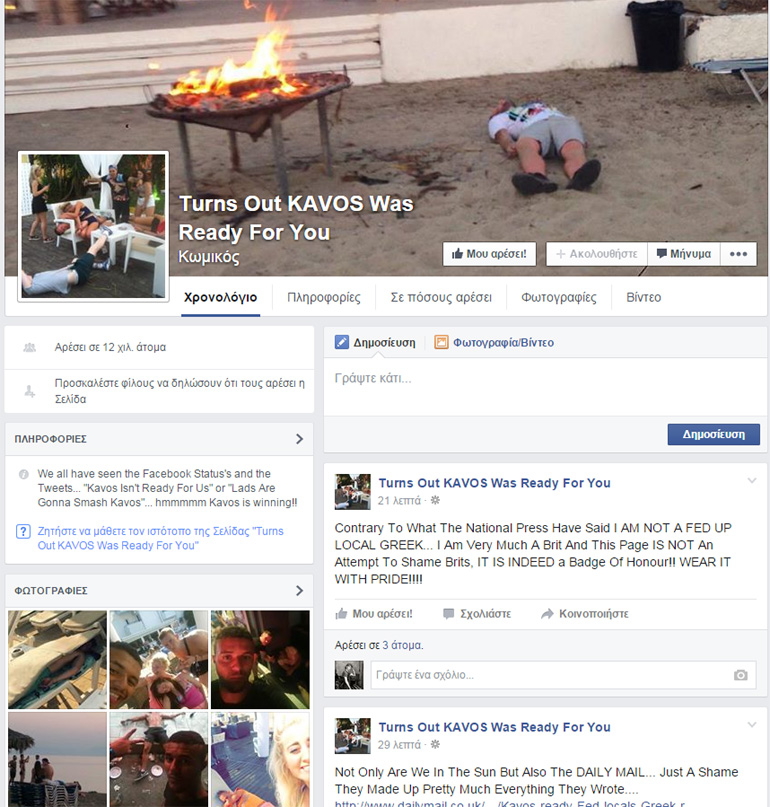 Τα… τεκμήρια ανεβαίνουν στη σελίδα «Turns out Kavos was ready for you» που δημιούργησε ένας ντόπιος προκειμένου να τους συνετίσει, ωστόσο οι άτακτοι τουρίστες όχι μόνο δεν πτοούνται, αλλά προσθέτουν και ετικέτες (tags) με το όνομά τους στις φωτογραφίες!