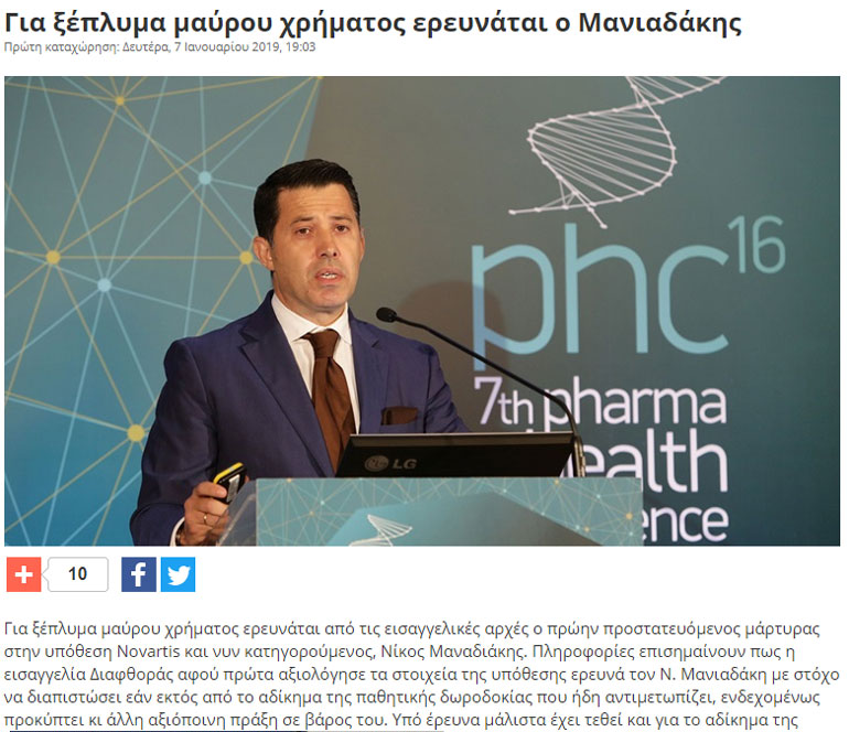 Σύμφωνα με πληροφορίες πάντως, η έρευνα για τον κ. Μανιαδάκη στρέφεται και στο ενδεχόμενο να έχει διαπράξει τα αδικήματα του ξεπλύματος μαύρου χρήματος και της ενεργητικής δωροδοκίας. Η Εισαγγελία Διαφθοράς φέρεται να αξιολογεί όλα τα στοιχεία της υπόθεσης λαμβάνοντας υπ’ όψιν και την παλαιότερη φορολογική εκκρεμότητα του κατηγορουμένου.