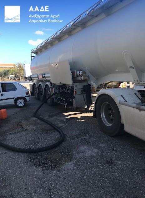 Οι ελεγκτές βρήκαν, στην πίσω πλευρά της εγκατάστασης, βυτιοφόρο, την ώρα, που εκφόρτωνε πετρέλαιο ναυτιλίας σε πλαστική δεξαμενή, για την οποία το πρατήριο δε διέθετε άδεια, ούτε είχε συνδεθεί με το σύστημα εισροών – εκροών.