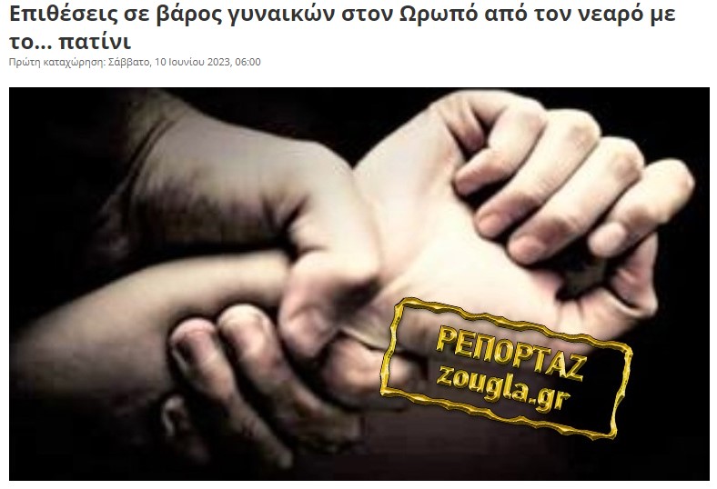 «Συνελήφθη στο πλαίσιο της αυτόφωρης διαδικασίας, βραδινές ώρες της 9-6-2023 στη Σκάλα Ωρωπού, από αστυνομικούς του Τμήματος Ασφαλείας Ωρωπού της Διεύθυνσης Ασφάλειας Αττικής, 23χρονος αλλοδαπός για απόπειρα βιασμού.