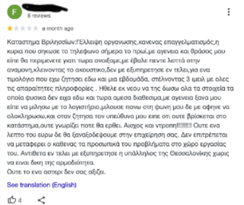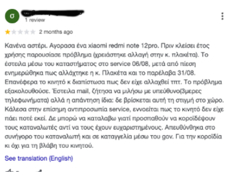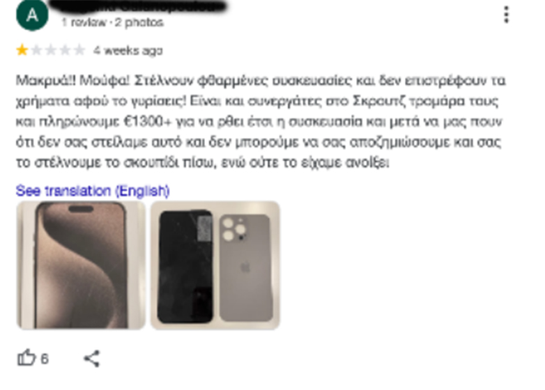Για του λόγου το αληθές, μπήκαμε σε ιστοσελίδα ιντερνετικών πωλήσεων και αξιολογήσεων, όπου το κατάστημα διατηρεί σελίδα και ανακαλύψαμε ότι η περίπτωσή της καταγγέλλουσας δεν ήταν η μοναδική που έχει εξαπατηθεί από το συγκεκριμένο κατάστημα στα Βριλήσσια, όπως μπορείτε να δείτε: