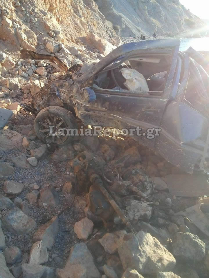 Δείτε ότι απέμεινε από το αυτοκίνητό της, καθώς επίσης και το ύψος του γκρεμού που αποφάσισε να βάλει τέλος στη ζωή της.
