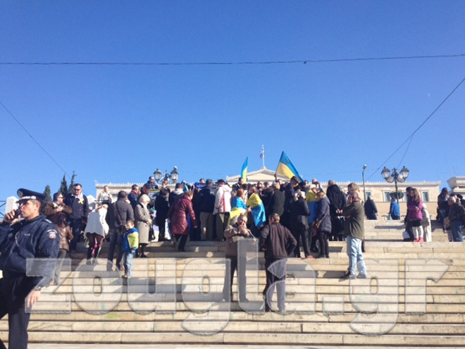 Συγκέντρωση διαμαρτυρίας πραγματοποίησαν το μεσημέρι της Κυριακής Ουκρανοί υπήκοοι στην πλατεία Συντάγματος.