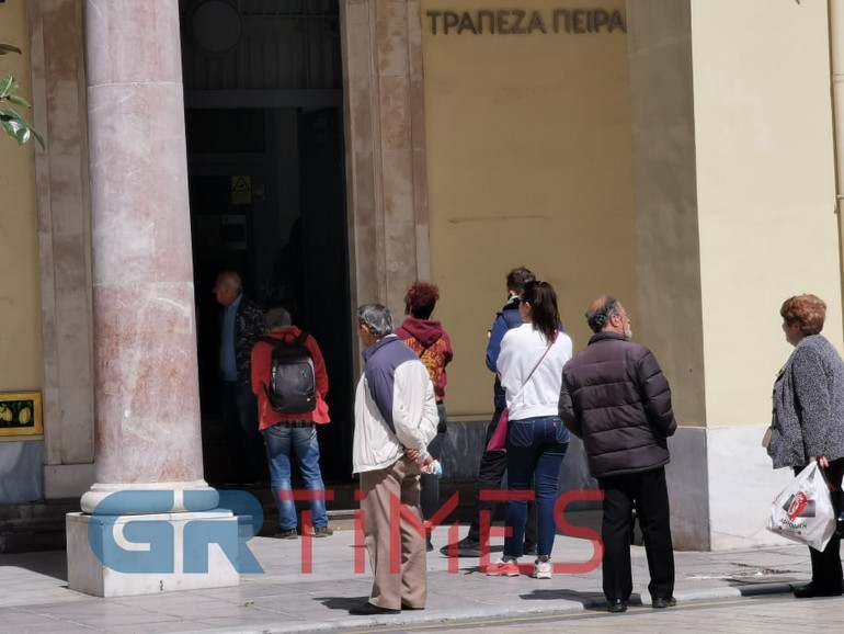 Όπως μπορείτε να δείτε στο παρακάτω βίντεο και τις φωτογραφίες του GRTimes.gr από το κέντρο της Θεσσαλονίκης, πολίτες -άλλοι με γάντια και μάσκες και άλλοι χωρίς- περιμένουν υπομονετικά έξω από τράπεζες για να εξυπηρετηθούν. Μάλιστα, όπως αναφέρουν, βρίσκονται… «στημένοι» στην ουρά για περισσότερο από μισή ώρα.