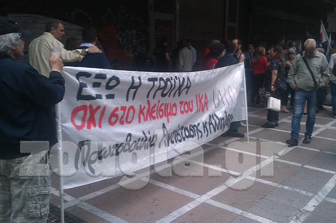 Συγκέντρωση διαμαρτυρίας έξω από το Υπουργείο Εργασίας πραγματοποιούν αυτήν την ώρα η «Επιτροπή Κατοίκων Κοινωνικοί Φορείς» και η «Διαπαραταξιακή Επιτροπή Δήμου Ιλίου», με αφορμή το κλείσιμο του υποκαταστήματος του ΙΚΑ Αγίου Φανουρίου.