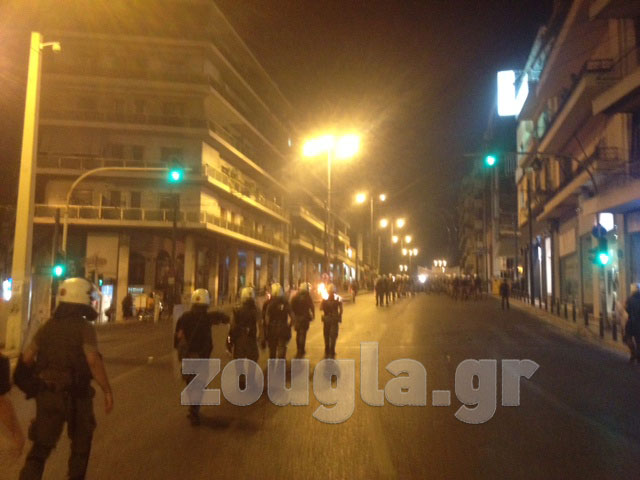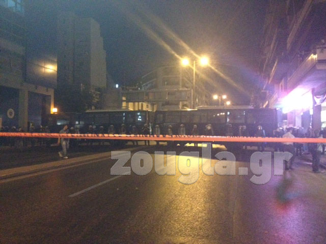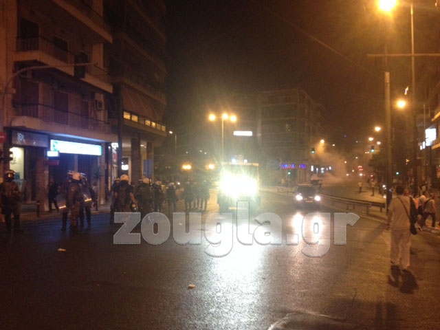 (Οι διαδηλωτές έχουν περιοριστεί στη συμβολή των Μιχαλακοπούλου και Μεσογείων, 200 μ. μακριά από τα γραφεία της Χρυσής Αυγής)