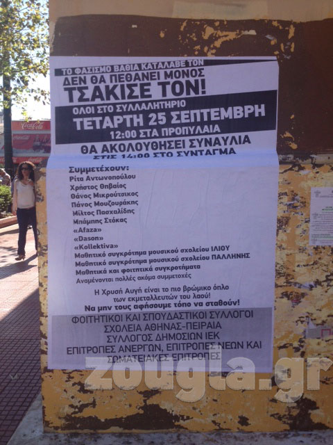 Διαβάστε επίσης Επεισόδια στην αντιφασιστική πορεία, Πρώτη καταχώρηση: Τετάρτη, 25 Σεπτεμβρίου 2013, 20:14