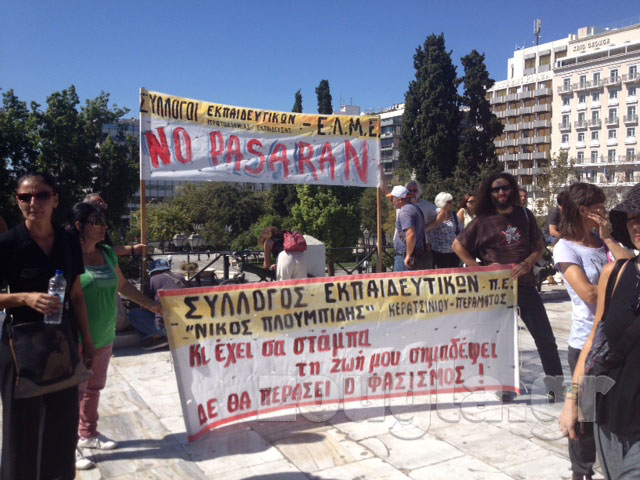 Το πρωί της ίδιας ημέρας πραγματοποιήθηκε μεγάλο αντιφασιστικό συλλαλητήριο καθηγητών, σπουδαστών, φοιτητών, μαθητών και μελών του ΠΑΜΕ στο Σύνταγμα, όπου αργότερα δόθηκε και συναυλία. Φοιτητικοί και σπουδαστικοί σύλλογοι, μαθητές και σπουδαστές, όλοι οι συγκεντρωμένοι, φώναξαν συνθήματα ενάντια στον φασισμό και την Χρυσή Αυγή. Ανάλογη συγκέντρωση πραγματοποιείται και στην Θεσσαλονίκη, στο Άγαλμα Βενιζέλου. Και εκεί ακολούθησε συναυλία.
