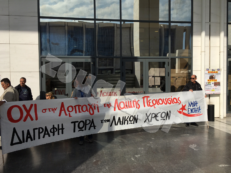 «Κανένα σπίτι στα χέρια τραπεζίτη» και «ΟΧΙ στην αρπαγή της Λαϊκής Περιουσίας» ήταν ορισμένα από τα συνθήματα που ήταν γραμμένα πάνω στα πανό.