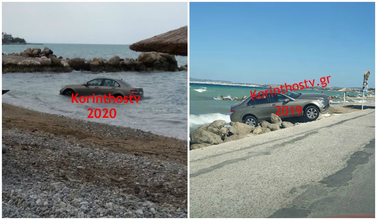 Να σημειωθεί ότι είναι η δεύτερη φορά που το ίδιο αυτοκίνητο κύλησε προς τη θάλασσα – Δείτε τι είχε γίνει πέρσι τον Αύγουστο στο ίδιο σημείο