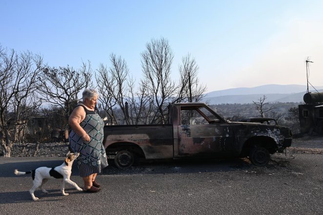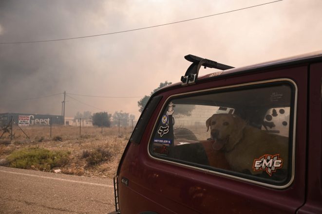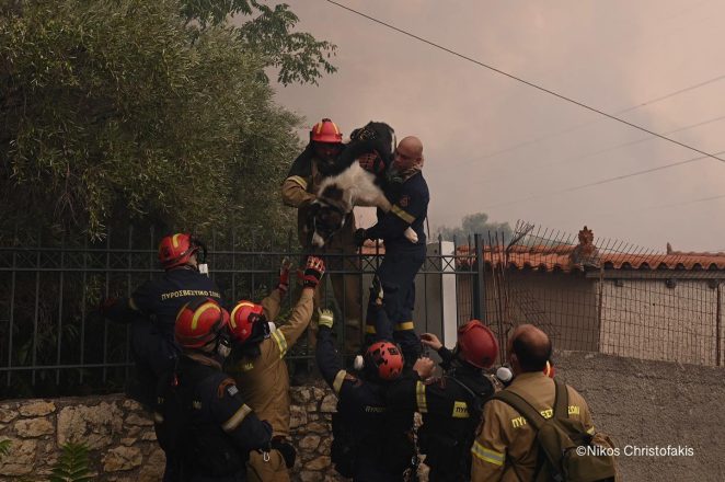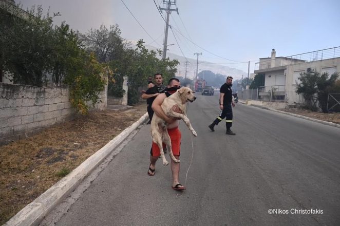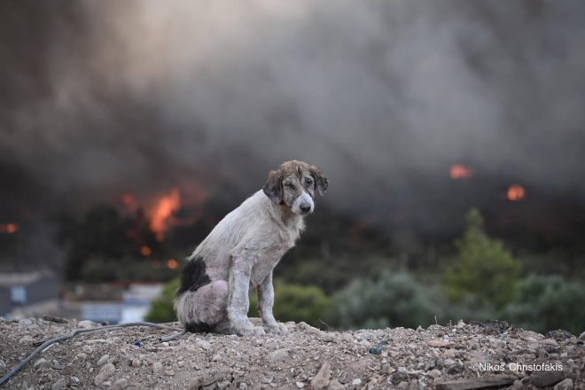 Συγκινητικές είναι οι φωτογραφίες του φωτορεπόρτερ της «Ζούγκλας» Νίκου Χριστοφάκη από σκυλάκια με φόντο τις πυρκαγιές σε όλη την Ελλάδα, από την Οινόη, τη Φυλή, το Μεγάλο Πεύκο και τη Μάνδρα. Στο φακό του zougla.gr ποζάρει το διάσημο πλέον αδεσποτάκι στην Οινόη, το οποίο έγινε viral μέσα σε λίγα λεπτά, πυροσβέστες και πολίτες στη Φυλή που εκκενώνουν την περιοχή, χωρίς να αφήσουν πίσω τους καμία «ψυχή» να χαθεί, στο Μεγάλο Πεύκο πολίτης εκκενώνει τον οικισμό του με «απαραίτητη αποσκευή» τον χνουδωτό του φίλο και τέλος στη Μάνδρα, μία κυρία που περνάει ανάμεσα σε ό,τι έχει απομείνει από την πυρκαγιά και δίπλα της ο πιστός της φίλος.