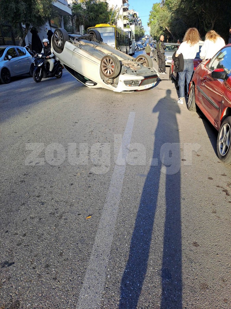 Παγκράτι, οδός Υμηττού: Ανατροπή αυτοκινήτου