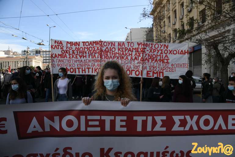 Ένταση επικρατεί αυτή την ώρα έξω από τη Βουλή, καθώς διαδηλωτές συγκρούονται με τις δυνάμεις της Αστυνομίας οι οποίες κάνουν χρήση χημικών για να τους απωθήσουν. Οι φοιτητές και οι εκπαιδευτικοί έφτασαν στην πλατεία Συντάγματος και κάποιοι από αυτούς επιχείρησαν να σπάσουν την αλυσίδα που είχαν δημιουργήσει οι αστυνομικοί μπροστά στο μνημείο του Άγνωστου Στρατιώτη.