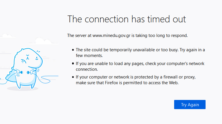 Για πολλές ώρες η σελίδα του Υπουργείου Παιδείας, που άνοιξε τελικά νωρίς το μεσημέρι, έδειχνε το εξής μήνυμα: