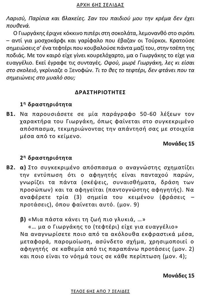 Τα θέματα για το εξεταζόμενο μάθημα Νέα Ελληνικά στα ΕΠΑΛ δόθηκαν στη δημοσιότητα από το υπουργείο Παιδείας....