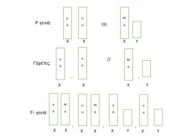 F1 γενιά: ΧΜ1ΧΜ2, ΧΜ1Χμ, ΧΜ2Υ, ΧμΥ