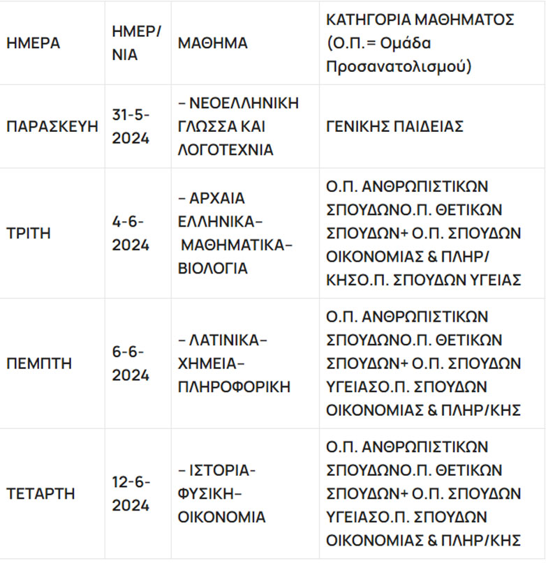 Αξίζει να σημειωθεί ότι θα μεσολαβήσει ένα κενό εξετάσεων, λόγω της διεξαγωγής των Ευρωπαϊκών Εκλογών στις 9 Ιουνίου.