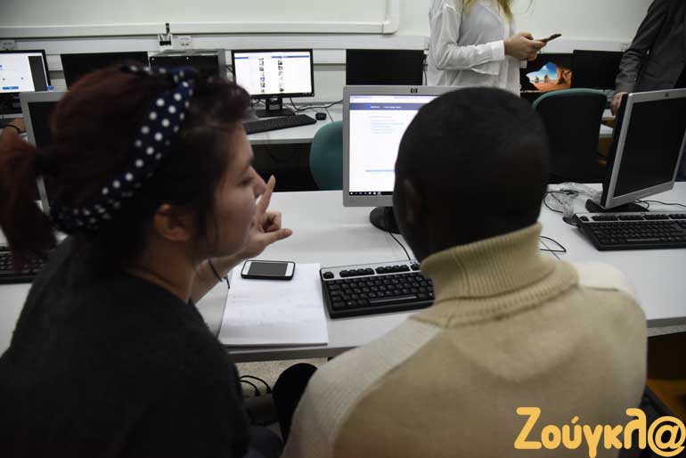 Η εκμάθηση της διαδικτυακής πλατφόρμας στους πρόσφυγες γίνεται από φοιτητές-εθελοντές βοηθούν στη λειτουργία της πλατφόρμας.