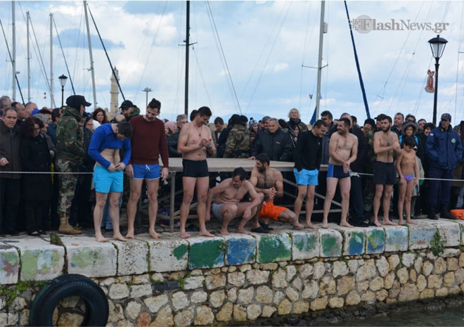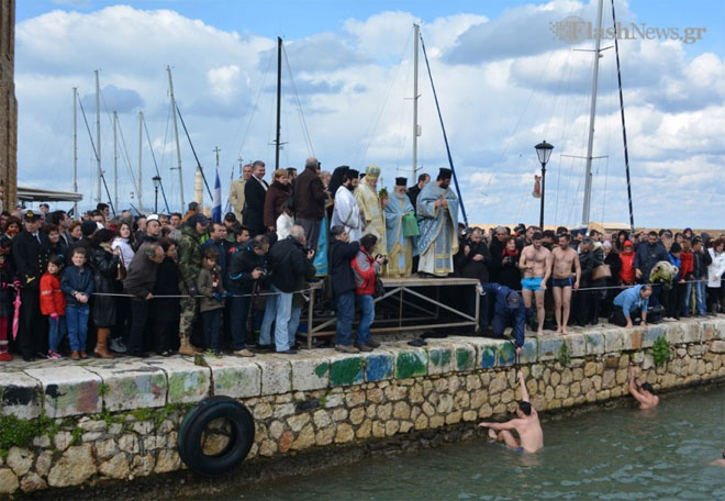 Αψηφώντας τον κακό καιρό και το κρύο, κολυμβητές βούτηξαν στα νερά του ενετικού λιμανιού Χανίων για να πιάσουν τον Σταυρό.