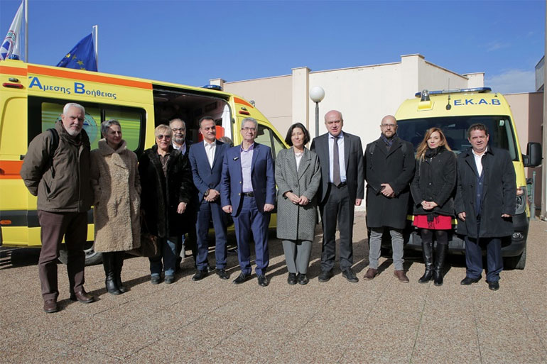 Στο Εθνικό Κέντρο Άμεσης Βοήθειας (ΕΚΑΒ), στην Πυλαία Θεσσαλονίκης, παραδόθηκαν τη Δευτέρα 20 ασθενοφόρα οχήματα, από τον Διαδριατικό Αγωγό Φυσικού Αερίου (TAP) AG, παρουσία της Διοίκησης του οργανισμού και εκπροσώπων της τοπικής αυτοδιοίκησης.