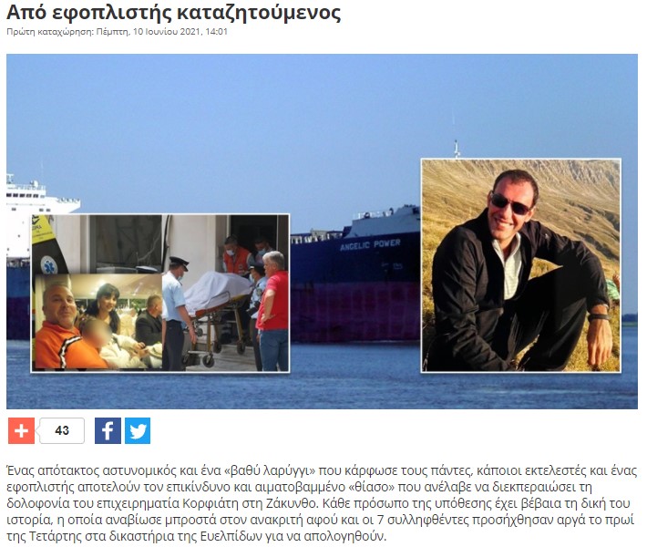 Υπενθυμίζεται ότι ο 54χρονος επιχειρηματίας ήταν ο βασικός στόχος αλλά είχε γλιτώσει αρχικά από την ενέδρα θανάτου, όχι όμως η γυναίκα του. Ωστόσο τον Μάιο εκτελέστηκε και αυτός εν ψυχρώ καθώς βρισκόταν σε γραφείο στο νησί.