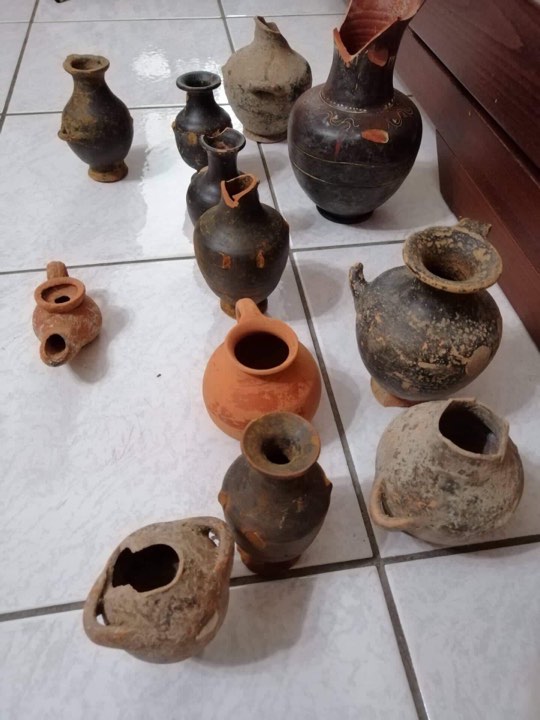 Ένα άγαλμα και 16 αγγεία παραδόθηκαν στην εφορία αρχαιοτήτων έπειτα από τηλεφώνημα που δέχτηκε ο σύμβουλος πολιτιστικής κληρονομιάς της UNESCO Πειραιώς και νήσων Γιώργος Τσούκαλης.