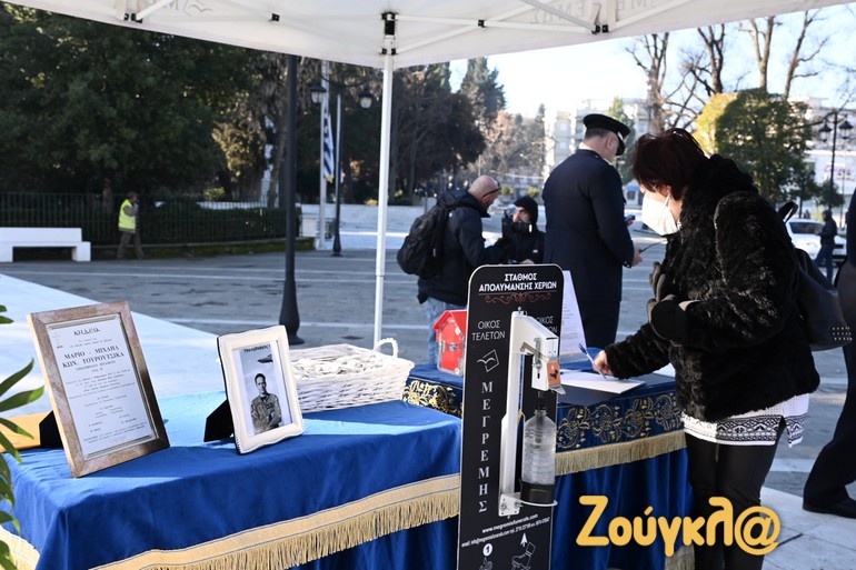 Στεφάνι κατέθεσε στο μνήμα η Πρόεδρος της Δημοκρατίας, ενώ ο αρχηγός ΓΕΑ παρέδωσε το ξίφος και τη σημαία.